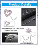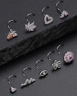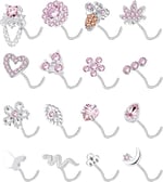 16Pcs Nose Stud Rings Screw Shaped Nose Ring Flower Snake Butterfly Heart Eye CZ Dangle Nose Rings S